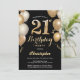 Invitation 21e anniversaire Ballons Noir et Or Confetti