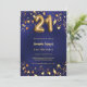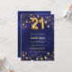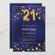 Une invitation moderne et design pour un 21ème anniversaire. Un arrière - plan bleu marine, décoré d'étoiles dorées. La couleur bleue est inégale. Personnalisez et ajoutez votre nom et les détails de votre fête.