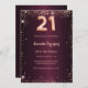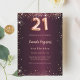 Pour un 21ème anniversaire élégant. Une couleur arrière - plan dégradé bordeaux. Décoré de faux éclats d'or rose. Personnalisez et ajoutez un nom et des détails du parti. Le nom est écrit avec un script de style manuscrit