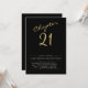 Invitation 21e Anniversaire Or Script moderne Noir