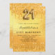 Une invitation moderne, élégante et glamour pour une fête de 21e anniversaire. Un arrière - plan à l'allure fausse or avec des gouttes de parties scintillant faux, la peinture goutte à goutte. Le nom est écrit avec un script de style moderne écrit à la main. Personnalisez et ajoutez les détails de votre fête. Le numéro 21 est écrit avec une police de style ballon, script.