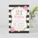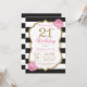 Invitation du 21e anniversaire. Noir rose et or. Parties scintillant or. Blancs et Noirs. Fleur Florale Rose. Anniversaire adulte. Fête d'anniversaire des femmes. Pour plus de personnalisation, cliquez sur le bouton "Customiser" et utilisez notre outil de conception pour modifier ce modèle.