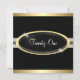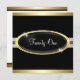 21e Événement spécial Anniversaire, Célébration, Invitation officielle. Plaques ovales noires et or avec étoiles blanches et verres en or jaune. RSVP correspondant disponible sur demande par e-mail.