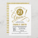 21e Anniversaire Invitation de fête en fausse parties scintillant Or et Blanc. Salut à 21 ans ! Design élégant de style de script de typographie moderne. Peut être customisé à n'importe quel âge. S'il vous plaît, envoyez-moi un message si vous avez besoin d'une personnalisation plus poussée.