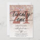 Famille Invitation et amis pour célébrer le 21e anniversaire avec ces invitations chic à la fille. Design avec une texture de parties scintillant brillante au champagne, vingt et un en écriture manuscrite tendance en noir et rose or. Personnalisez avec vos détails en lettres majuscules.