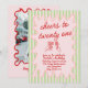 Si vous cherchez une invitation unique 21ème anniversaire élégante et facile à éditer, celle-ci est parfaite pour vous. Comme vous le voyez, il présente un script écrit à la main rouge avec des acclamations fantaisistes à vingt et un sur arrière - plan rose. Et des lunettes de champagne et de martini rouge dessinées à la main sur le mode "cheers". À l'intérieur d'un cadre rose ondulé dessiné à la main et de bandes d'aquarelle verte. Avec RSVP sur le dos et une photo changeable sur le dos à l'intérieur d'un cadre rouge à main ondulée. Avec des informations complètes qui peuvent être customisées facilement en cliquant sur le bouton de personnalisation. Cette invitation d'anniversaire branchée et originale est aussi une invitation électronique numérique si vous voulez l'envoyer par courriel ou par texte. Alors attrapez-le et faites vraiment participer vos invitations.