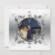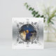 Cartes d'invitation personnalisées pour l'anniversaire de mariage en argent avec des volutes métalliques en forme de vigne formant un cadre circulaire pour la photo personnalisée du couple pour leur 25e anniversaire. Le dos est de couleur gris coordonné et prêt pour vos informations de fête d'anniversaire de mariage en argent personnalisées.