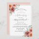 Invitation d'anniversaire de mariage exquise avec des détails argentés et des éléments floraux délicats peints à l'aquarelle à la main. Possibilité de modifier le numéro d'anniversaire pour répondre à vos besoins. Fleurs et feuillage dans des tons de pêche, rose blush, rose poussiéreux, gris bleu menthe et vert menthe sauge. Dos de carte de couleur pêche blush élégante (rosé). Utilisation d'une écriture élégante manuscrite et d'une typographie bloc. Dos de carte avec un détail floral captivant au centre. Produits coordonnés disponibles. Fait partie de notre collection de mariage et d'événements "Ethereal in Blush Peach".