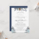 Invitation d'anniversaire de mariage de 25 ans (ou autre) exquise avec des détails argentés et de superbes détails floraux aquarelles peints à la main en bleu nuit, bleu pâle et gris. Possibilité de modifier les numéros d'anniversaire pour répondre à vos besoins. Dos en bleu nuit avec cadre argenté et élément floral central captivant. Produits coordonnés disponibles. Fait partie de notre collection de mariage et d'événements "Rustic Blue Mountains".
