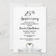 Une simple et élégante invitation pour les 25 ans de mariage avec l'amour comme thème. Deux beaux cygnes penchant la tête ensemble et formant un cœur. Fond blanc. Emplacements pour les noms et les détails de la fête. Lettres noires.
