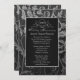 Élégante invitation pour le vingt-cinquième anniversaire de mariage sur fond de damas floral noir et argent avec une bordure accentuée d'argent pour célébrer cette date spéciale de vingt-cinq ans ensemble. Personnalisez le devant de l'invitation avec l'heure, la date, le lieu et d'autres informations.