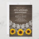 25e Anniversaire de Mariage Invitations Rustiques en Bois de Campagne avec Broderie Anglaise et Tournesols. Personnalisées selon les détails de votre célébration. Vous pouvez le modifier pour les 10e, 30e, 40e, 50e, 60e anniversaires, etc. Caractéristiques de jolie broderie anglaise, tournesols et typographie sur un fond en bois sombre rustique. De superbes invitations d'anniversaire de mariage élégantes pour des anniversaires de mariage champêtres créatifs. Cette invitation d'anniversaire de mariage est conçue par superdazzle.com