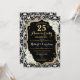 Design élégant rustique avec motif damassé noir et blanc et faux or brillant. Caractéristiques police script et roses blanches.