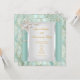Invitation 25e Anniversaire Vert sarcelle Damassé Argent Blan