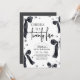Modern stylish birthday party invitation black watercolor bow and modern script. Classy and elegant, simple and modern invitation.