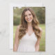 This elegant photo graduation party invitation features a sophisticated vertical layout on a white background framed by a delicate gold border, creating a timeless and refined presentation. A full-length portrait of the graduate is displayed along one side, beautifully balanced by classic serif typography on the opposite side, where the graduate’s name is highlighted in subtle gold lettering for added distinction. The design includes a formal announcement of the graduation, the university and degree details presented in clean, structured text, and a clearly defined graduation party section with event date, time, and location. The overall look is polished, graceful, and upscale, making it ideal for celebrating this milestone with style and elegance. Add another photo to the back of the card - personalize with your own information.