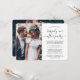 Famille d'Invitations et amis pour une célébration mariage de réception simple et élégante avec cette élégante invitation photo moderne 2. Tout est simple à personnaliser pour un 1er anniversaire, une cérémonie de renouvellement de voeux, un mariage de suite, un après-elopement ou un dîner. Customisez-le pour inclure tous les détails de votre choix, tels que la date du mariage, le code vestimentaire, rsvp, le site web, etc. (IMAGE PLACEMENT CONSEIL : Un moyen facile de centrer une photo exactement comment vous voulez est de la rogner avant de télécharger sur le site Zazzle.) Le design moderne minimaliste noir et blanc comprend deux photos du couple marié, la calligraphie manuscrite branchée et la typographie chic de type machine à écrire.Que vous ayez quitté, eu une minimonie réduite ou micro mariage, ou votre fête spéciale de jour devait être reprogrammée en raison d'une pandémie de report, le heureux jamais après la fête peut encore être commencé. Félicitations à la mariée et au marié !