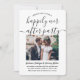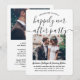 Famille d'Invitations et amis pour une célébration mariage de réception simple et élégante avec cette élégante invitation photo moderne 2. Tout est simple à personnaliser pour un 1er anniversaire, une cérémonie de renouvellement de voeux, un mariage de suite, un après-elopement ou un dîner. Customisez-le pour inclure tous les détails de votre choix, tels que la date du mariage, le code vestimentaire, rsvp, le site web, etc. (IMAGE PLACEMENT CONSEIL : Un moyen facile de centrer une photo exactement comment vous voulez est de la rogner avant de télécharger sur le site Zazzle.) Le design moderne minimaliste noir et blanc comprend deux photos du couple marié, la calligraphie manuscrite branchée et la typographie chic de type machine à écrire.Que vous ayez quitté, eu une minimonie réduite ou micro mariage, ou votre fête spéciale de jour devait être reprogrammée en raison d'une pandémie de report, le heureux jamais après la fête peut encore être commencé. Félicitations à la mariée et au marié !