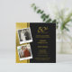 2 Photos Cartes d'invitation pour une fête d'anniversaire de mariage de 50 ans en or. Le design est épuré et classique avec des couleurs or et noir. Comprend 2 photos du couple célébrant - maintenant et le jour de leur mariage. Personnalisez le nom, la date et les détails pour votre anniversaire de mariage d'or ou toute autre célébration d'anniversaire. Peut être facilement personnalisé pour d'autres occasions spéciales, 10e, 20e, 30e, 35e, 40e, 45e, 50e, 55e, 60e, 65e. Personnalisez ces invitations d'anniversaire pour les rendre parfaites pour vous ! Cette invitation d'anniversaire de mariage est conçue par superdazzle.com