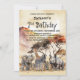 Invitation vos amis et proches et célébrer le 2ème anniversaire de votre enfant avec cette invitation de fête d'anniversaire safari qui présente un paysage de savane africaine dans l'arrière - plan et un groupe de bébés animaux, qui comprend un petit tigre, éléphant, rhinocéros, poussin d'autruche, zèbre et cigogne au premier plan.