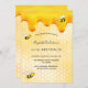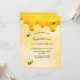 Elégante, amusante, invitation à la fête d'été de 30e anniversaire. Jaune, arrière - plan blanc avec un motif de nid d'abeille. Décoré avec du miel doux et doré et des abeilles bourdonnantes. Le nom est écrit avec un script de style moderne écrit à la main. Lettres noires. Idéal pour un thé d'été dans un jardin, jardin. Dos : motif jaune peigne blanche et une joyeuse bumble abeille.