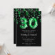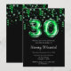 Cette invitation d'anniversaire élégante et glamour porte le numéro 30 en ballons verts avec des confettis de flocon de neige. Le texte combine écriture manuscrite et polices sans serif modernes pour un look élégant et sophistiqué.