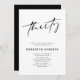 30e Anniversaire Chic Moderne Script Minimaliste Invitation... Notre élégante invitation à la fête du 30e anniversaire, en noir et blanc, présente une écriture manuscrite moderne et chic graphique de "trente" au-dessus de votre texte d'invitation personnalisé. Le fond de l'invitation est noir élégant. Tout le texte (sauf le graphique texte "trente") peut être facilement révisé avec vos propres détails sur le modèle de personnalisation.