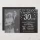 30e anniversaire de mariage avec photo personnalisée. Invitation tableau noir et argent. Trentième anniversaire de mariage. Fond diamant pailleté noir et argent. Confettis argentés. Anniversaire adulte. Fête d'anniversaire pour homme ou femme. Pour une personnalisation plus poussée, veuillez cliquer sur le bouton "Personnaliser" et utiliser notre outil de conception pour modifier ce modèle.