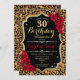 Invitation du 30e anniversaire. Elégant design rouge noir blanc avec parties scintillant d'or. Comprend un poster de animal de guépard léopard, des caractères de script et des roses. Parfait pour une soirée d'anniversaire élégante. Peut être personnalisé dans n'importe quelle année! Message-moi si vous avez besoin d'une personnalisation plus poussée.