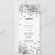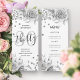 Elégant Glam Silver Floral Parties scintillant 30e Anniversaire Script modèle avec texte de menu de fête, arrangements floraux, confettis de parties scintillant et script de typographie moderne.