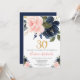 Invitation 30e anniversaire rose et bleu marine floral