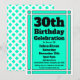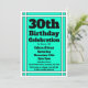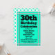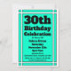 Envoyez des invitations à une fête du 30e anniversaire avec cette Turquoise invitation du 30e anniversaire. Il peut être customisé avec vos informations personnelles.