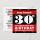 Ce design contemporain noir rouge et blanc avec ses grandes et audacieuses lettres est une façon amusante pour les gens invitations de fêter le 30e anniversaire d'une personne très spéciale. Texte sur carte totalement personnalisable - Vous pouvez également modifier les couleurs du texte pour un aspect différent. Vous pouvez expérimenter différents types de papier en cliquant sur l'onglet "Options d'invitation" dans le coin supérieur droit. Je vous recommande le papier métallique serré dans la glace, qui donne à votre invitation d'anniversaire un éclat festif et brillant.