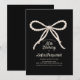 Elegant black and white invitation features large white pearl script bow on a black background. Calligraphy adds a special touch. All text is editable.