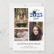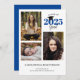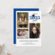 Thiclean and modern offers a 3 photo collage on a white background. The design is accented with the blue and offers custom text on the front and back.