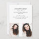 Personalize this modern photo graduation announcement front and back with your own text and pics. Features a minimalist design of a main photo on the front with stylized dark gray text that allows the photo to pop. Ample space on the back to further personalize with your own details and two smaller photos. Photo credit: adapted images from Pexels.com by Maryia Plashchynskay