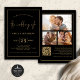 Invitation 3 Photos Script Line QR Code Black Gold Mariage