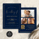 Invitation 3 Photos Script Line QR Code Marine Gold Mariage
