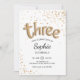 Invitation de 3e anniversaire pour fille ou garçon. Design blanc, or avec confettis en faux parties scintillant. Dispose de rayures et de ballons à la mode lettres trois. Parfait pour un troisième anniversaire élégant. Message-moi si vous avez besoin d'une personnalisation plus poussée.