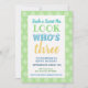 Beau bleu vert jaune, tons pastel, avec motif de trèfle, couleurs agréables et complémentaires. Excellent design pour l'invitation à l'anniversaire et une formulation intelligente pour le troisième anniversaire.