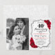 Invitation 40e anniversaire avec photo - Rouge rubis argent