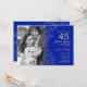 40e anniversaire avec photo - Invitation Or Blanc Saphir. Design moderne bleu royal avec dessins de contours botaniques et typographie en police script. Carte d'invitation tendance simple parfaite pour une célébration d'anniversaire de mariage élégante. Peut être personnalisé pour refléter n'importe quelle année de mariage. Invitations Zazzle imprimées ou modèle de template numérique téléchargeable instantanément.