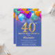 40e anniversaire Ballons bleu et or colorés et Invitation Confetti. Pour plus de personnalisation, cliquez sur le bouton "Customiser" et utilisez notre outil de conception pour modifier ce modèle.