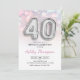 40e anniversaire invitation de fête. Design élégant en argent faux parties scintillant avec lumières rose pastel et violet. La carte Invitation comporte le numéro d'argent 40 ballons et la police de script. Parfait pour une célébration anniversaire élégante. Message-moi si vous avez besoin d'âge personnalisé.