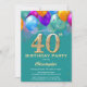 40e anniversaire Aqua Turquoise Turquoise et or couleur ballons et Invitation Confetti. Pour plus de personnalisation, cliquez sur le bouton "Customiser" et utilisez notre outil de conception pour modifier ce modèle.