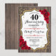Design élégant rustique avec motif en bois brun foncé et faux doré brillant. Confettis et roses rouges. Peut être personnalisé pour n'importe quelle année d'anniversaire. Envoyez-moi un message si vous avez besoin d'autres modifications.
