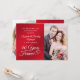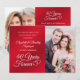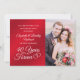 Célébrez un 40e anniversaire de mariage avec cette élégante invitation photo rouge rubis et blanche avec une typographie calligraphique 40 ANS DANS POUR TOUJOURS accentuée de cœurs entrelacés et de 2 photos (une de chaque côté - peut-être des photos de l'époque et d'aujourd'hui pour un souvenir mémorable). Le titre est également modifiable pour une utilisation pour un 15e ou 80e anniversaire de rubis. Contactez le concepteur via Zazzle Chat ou makeitaboutyoustore@gmail.com si vous souhaitez que ce design soit modifié ou dans une autre couleur, sur un autre produit ou si vous souhaitez des articles coordonnés.