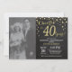 40e Anniversaire de Mariage avec photo personnalisée. Invitation Ardoise Noir et Or. Quarantième Anniversaire de Mariage. Fond Diamant Pailleté Or et Ardoise Noir. Confettis Or. Anniversaire Adulte. Fête d'anniversaire pour Homme ou Femme. Pour une personnalisation supplémentaire, veuillez cliquer sur le bouton "Personnaliser" et utiliser notre outil de conception pour modifier ce modèle.