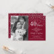 Invitation pour les 40 ans de mariage avec photo. Design élégant en argent et rouge rubis avec police de caractères script et confettis. Peut être personnalisé pour afficher n'importe quelle année de mariage. À 40 ans de mariage !