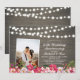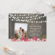 Célébrez votre jour spécial avec cette invitation personnalisée pour l'anniversaire de mariage avec photo. Ce design présente de belles fleurs rouges et roses et des guirlandes lumineuses sur un fond en bois rustique. Vous pouvez personnaliser le texte pour n'importe quelle année. Remplacez la photo exemple par votre propre photo. Des articles de fête assortis sont disponibles dans ma boutique BaraBomDesign.
